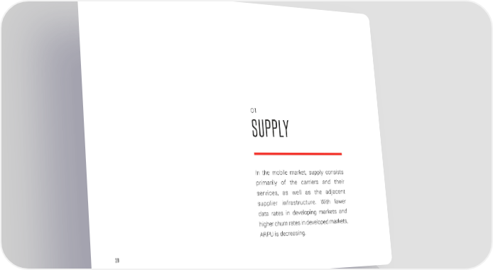 O1 SUPPLY In the mobile market, supply consists primarily of the carriers and their services, as well as the adjacent supplier infrastructure. With lower data rates in developing markets and higher churn rates in developed markets, ARPU is decreasing. 39