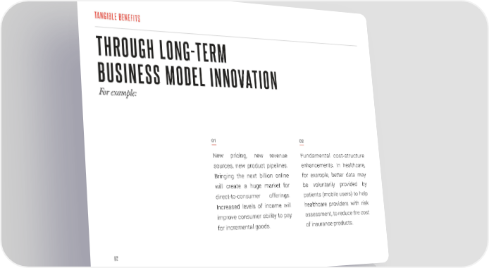 TANGIBLE BENEFITS THROUGH LONG-TERM BUSINESS MODEL INNOVATION For example: O1 O2 New pricing, new revenue Fundamental cost-structure sources, new product pipelines. enhancements. In healthcare, Bringing the next billion online for example, better data may will create a huge market for be voluntarily provided by direct-to-consumer offerings. patients (mobile users) to help Increased levels of income will healthcare providers with risk improve consumer ability to pay assessment, to reduce the cost for incremental goods. of insurance products. 82